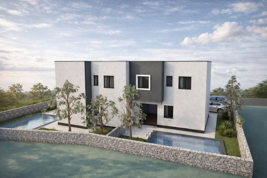 wird eine Neubau-Doppelhaushälfte mit Pool und Garten errichtet.