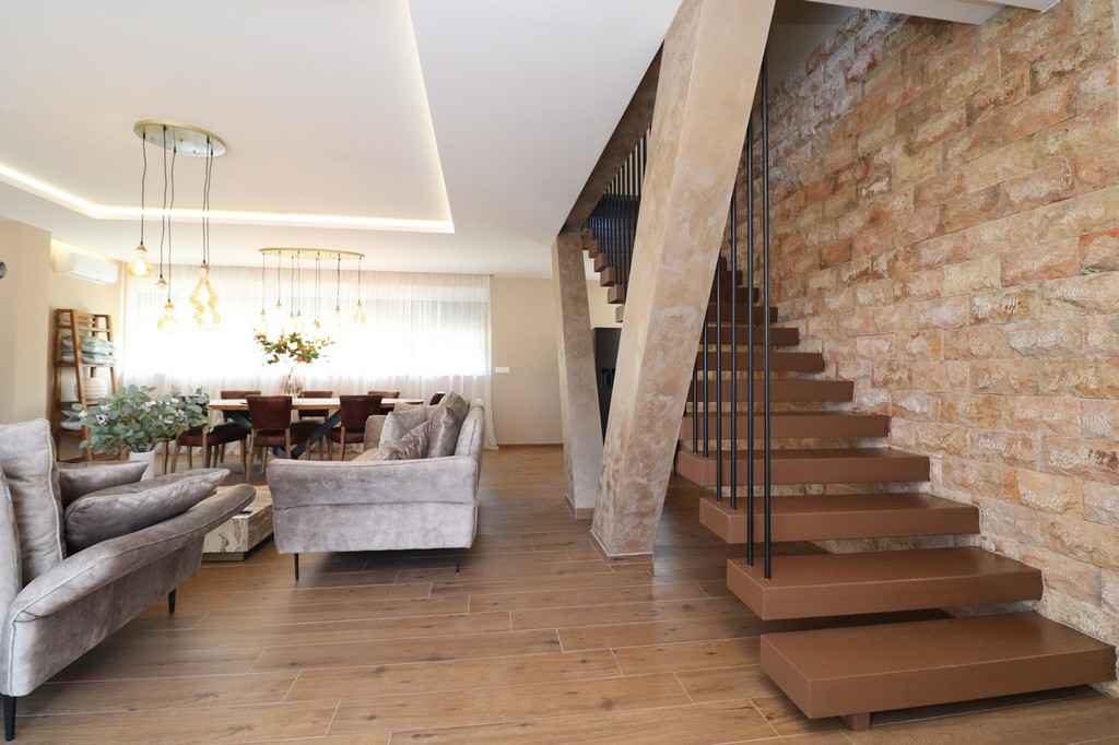 Eine Innentreppe führt in das Obergeschoss, wo sich zwei äusserst großzügige